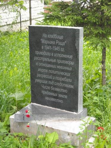 В 1941–1945 годах одним из мест захоронения расстрелянных и умерших в тюрьмах в Нижнем Новгороде служило кладбище «Марьина роща» (основано в 1938). Точное число захороненных неизвестно. Впоследствии эти участки подверглись вторичным захоронениям. В 1994 на средства еврейской общины Нижнего Новгорода установлен памятник евреям – жертвам Холокоста и сталинских репрессий. 17 сентября 2009 по инициативе Комиссии по восстановлению прав реабилитированных жертв политических репрессий при губернаторе Нижегородской области при входе на кладбище была установлена стела с надписью: «На кладбище “Марьина Роща” в 1941–1945 гг. приводили в исполнение расстрельные приговоры в отношении невинных жертв политических репрессий и погребали умерших под следствием. Число безвестно преданных земле неизвестно». Ежегодно 30 октября, в День памяти жертв политических репрессий, на кладбище проводится панихида, к стеле возлагают цветы.